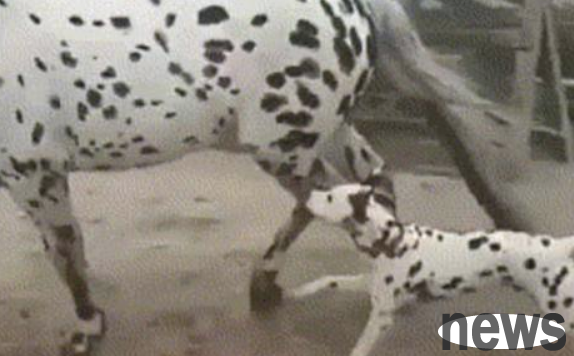 One day the owner took the Dalmatian to play in a pasture in the countryside. The dog who arrived at the farm unleashed his true nature and ran around excitedly. Suddenly he saw a spotted horse. The spotted horse's skin was very similar to its own. The spotted dog's eyes lit up instantly. It thought the spotted horse was its mother, so it kept chasing the spotted horse. The spotted horse thought that the dog was trying to bully it, so it was frightened and wandered around, and the dog kept chasing it. The owner saw this scene and thought it was really funny. In fact, it is because the Dalmatian dog has no mother since he was a child that he mistakenly thinks that the Dalmatian horse is his mother. Dogs are really pitiful and funny