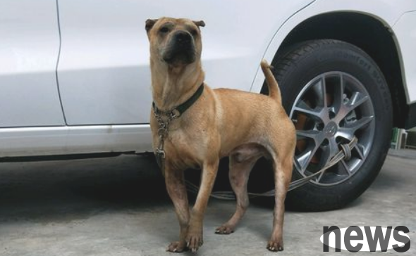 I tied the local dog to the dog's wheel. The dog chain that I usually tie it with is at home. I only take this one with me when I go out. There is no suitable place to tie it.