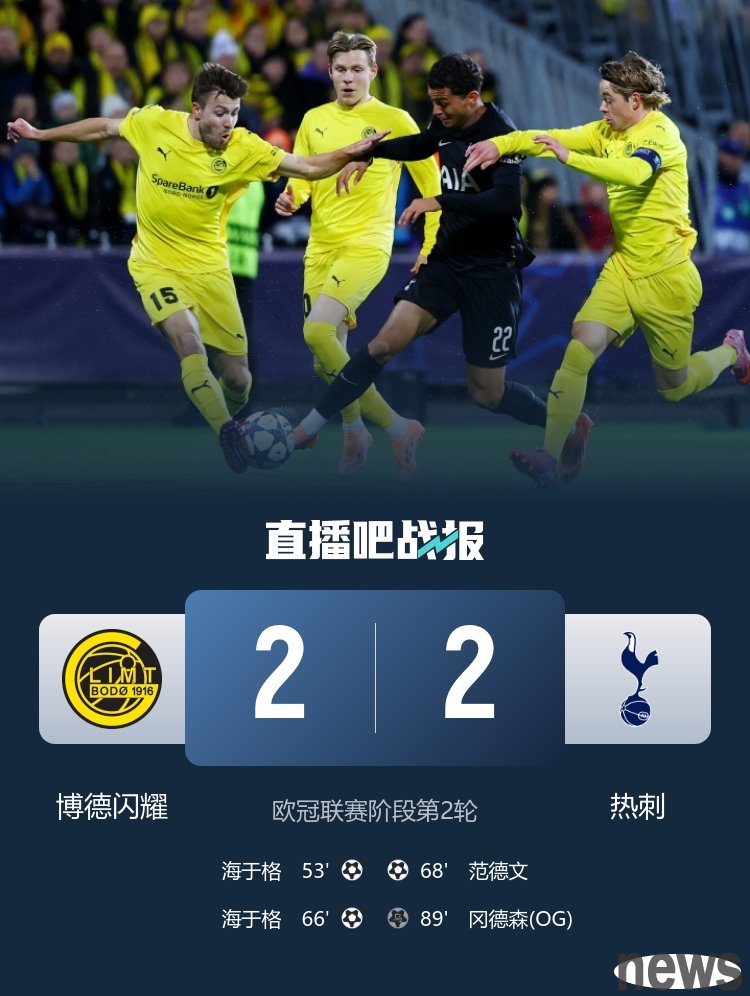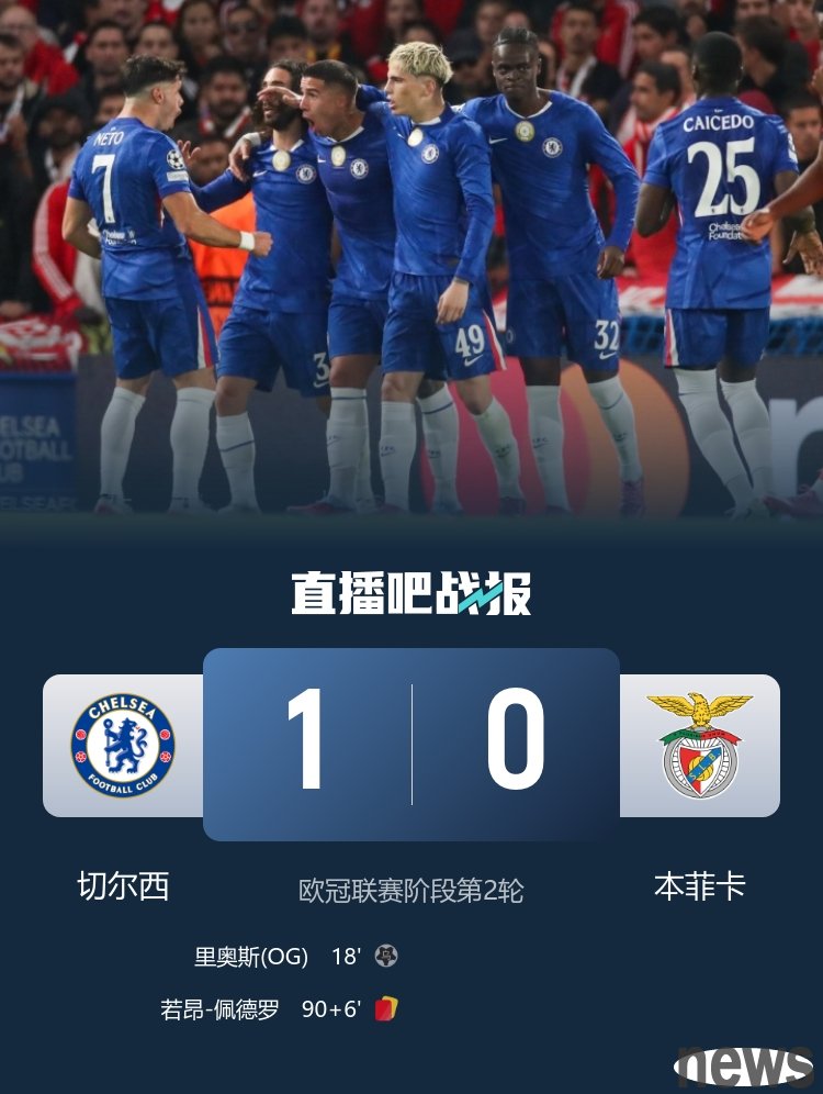 In the second round of the Champions League stage, three Premier League teams played today, with a record of 1 win, 1 draw and 1 loss. Liverpool lost 0-1 to Galatasaray, Chelsea defeated Benfica 1-0, and Tottenham tied Bode 2-2. Early tomorrow mornin...