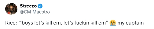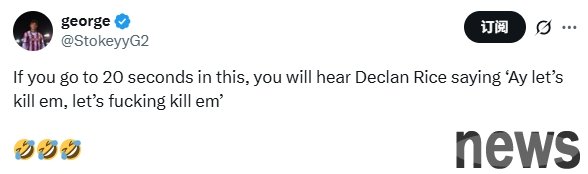 When Eze scored his second goal at the beginning of the second half and Arsenal led 3-0, Rice shouted to his teammates while celebrating with his teammates: "Hey! Let's kill them, f**king kill them!" Many fans pointed out on social media that the broadcast footage clearly captured Rice's words.